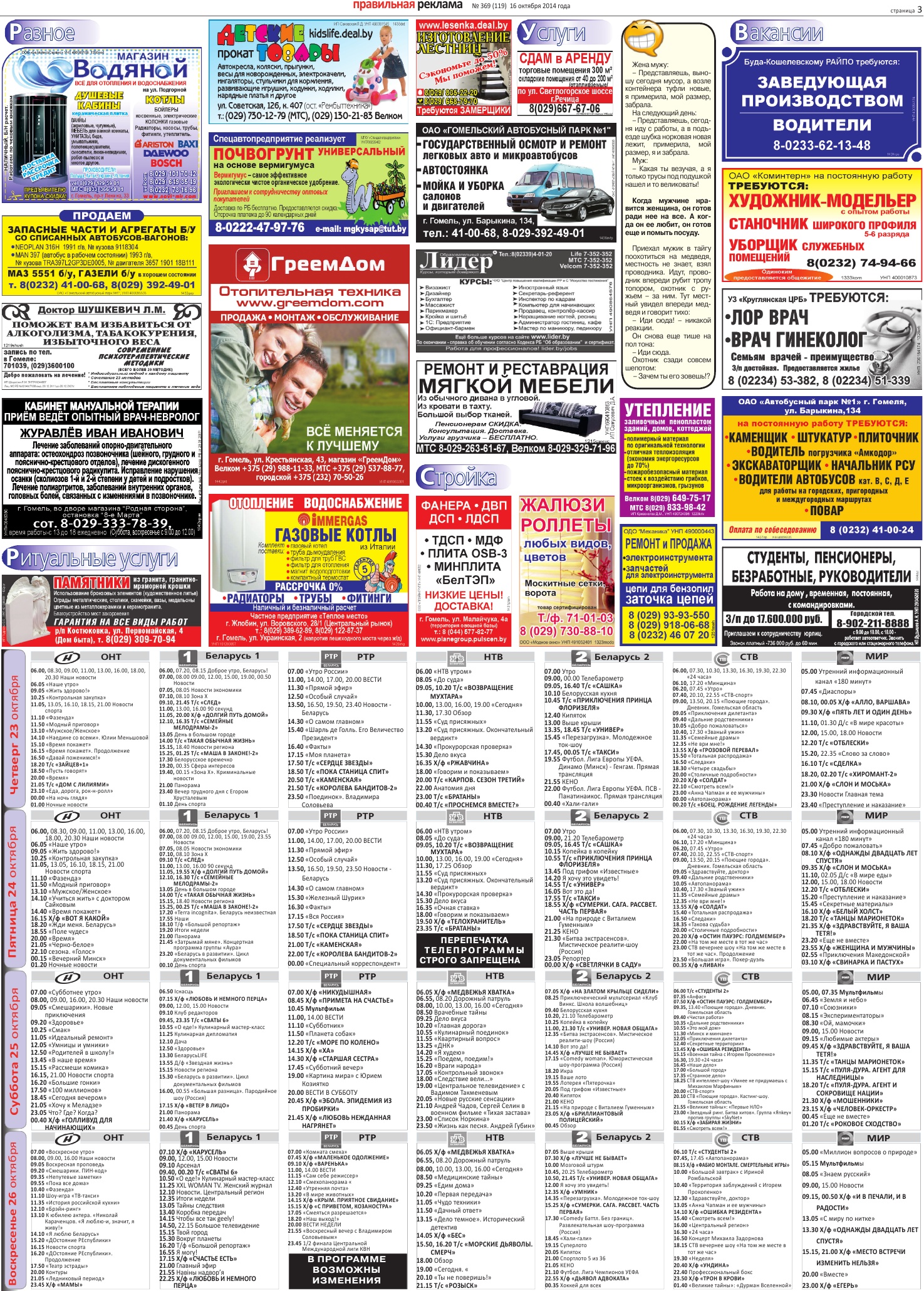 20.10.2014 "Правильная реклама-Гомель" за 16.10.2014 (№119)