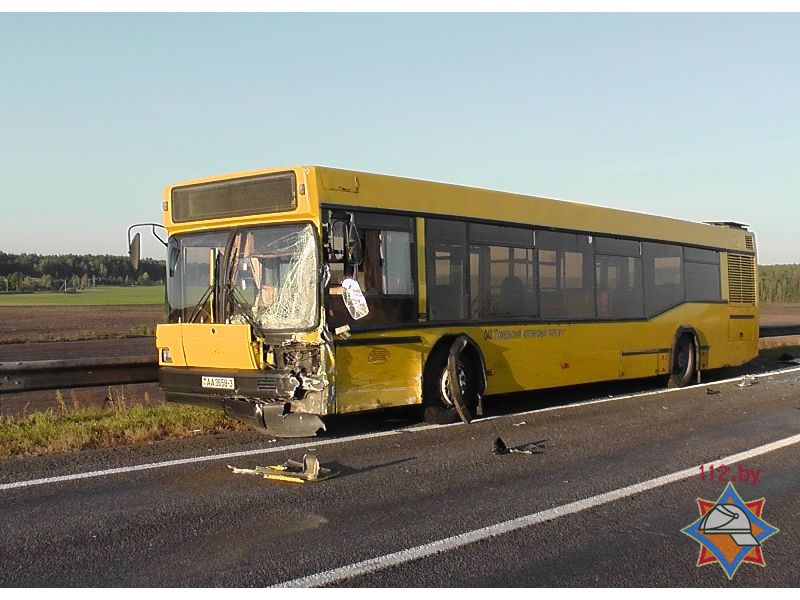 На 49 км автодороги граница Российской Федерации – Гомель – Кобрин на путепроводе водитель автомобиля Акура MDX не справился с управлением, выехал на полосу встречного движения, где столкнулся с рейсовым автобусом «Гомель – Глыбоцкое».