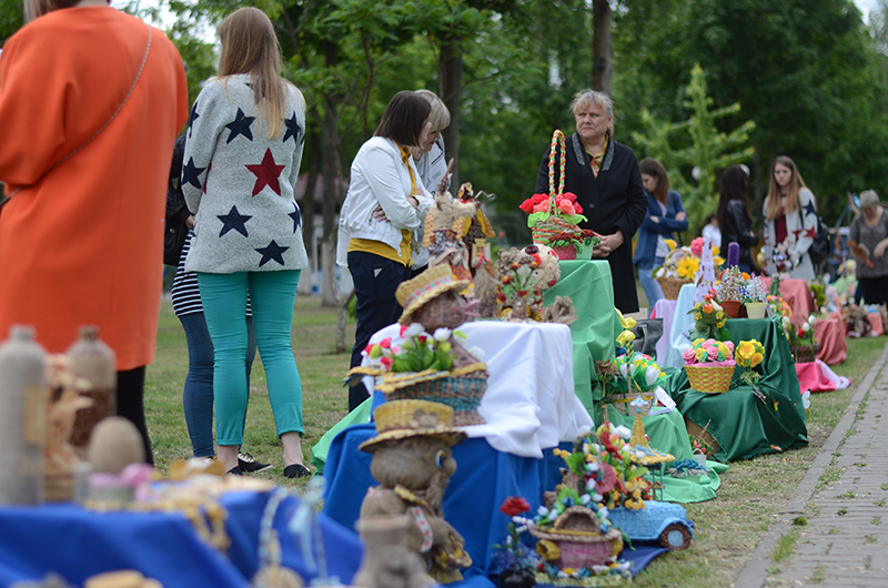 Прыжки на батуте и праздничная развлекательная программа ожидала ребят возле кинотеатра «Мир». Здесь же была организована выставка поделок, сделанных своими руками работниками и воспитанниками детских садиков Гомеля.