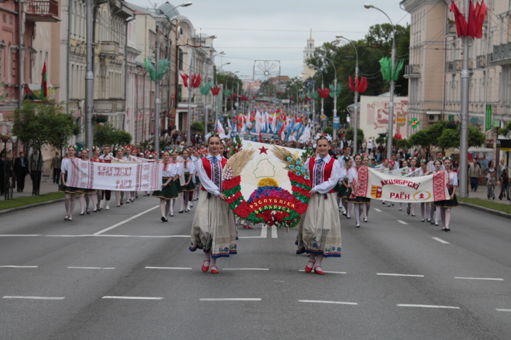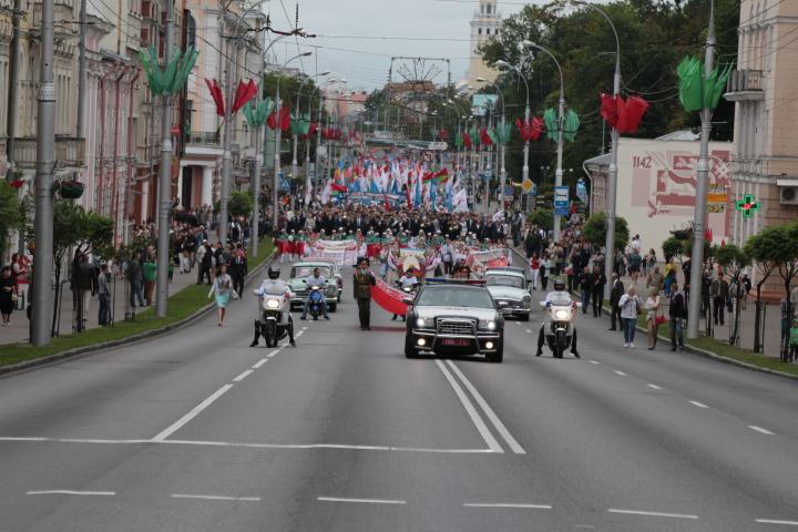 Переключиться на мобильную версию.Праздничная программа Дня Независимости в Гомеле открыта. Несмотря на пасмурное начало июля, организаторы создали красочное зрелище. Традиционное шествие в традиционном сопровождении «Крайслера» ГАИ открыли 22 герба – Гомеля и всех райцентров. Колонна прошла до Вечного огня, где состоялся митинг и церемония возложения цветов. Дальше – больше…