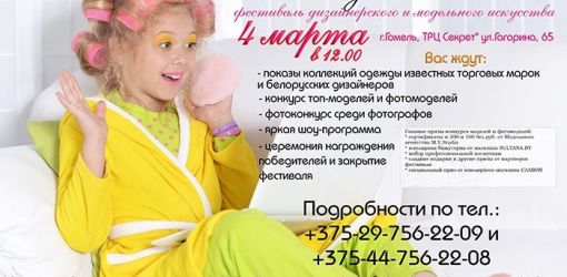 В рамках фестиваля пройдет конкурс GomelTopModel (мини-мисс) и GomelCoverModel (фотомодель). Жюри оценит способности конкурсантов и определит два Гран-при в двух номинациях, а также 1, 2, 3 места в каждой возрастной категории. Все участники получат призы и подарки от партнеров Фестиваля и дипломы, а призеры будут награждены специально учрежденными призами – сертификатами на 200 и 100 белорусских рублей от Модельного агентства «M.Y.Studio», сертификатом от Туристического агентства Бюджет-Тур, ювелирным украшением от магазина Славия и Султана.бай, дизайнерской одеждой от интернет-ателье «Маленькая леди» и прочими памятными призы.